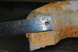 We use a rawhide thong behind the cantle which is thicker and wider than our normal lace, but we nail it down rather than lace through the tree. Some tree makers today still use a lace around the front, usually nailed down like we do the cantle thong. But Rod just nails it down there and we have not had problems with the nails pulling out. One of the reason we can just use nails is because of the difference in materials. Using straight tacks in pine versus ring shank nails in yellow poplar makes a big difference in holding power. And this whole tree is pine, with the exception of the horn.