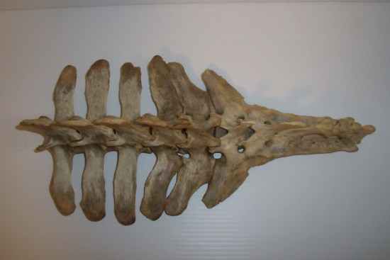 If you look at them from the side, the lumbar dorsal processes lean forward, the back 5 sacral processes lean backwards and that one in the middle couldn't decide what to do so it stood straight up. They call that a sacralized lumbar vertebrae. Just one of the anomalies that can be found in equines.