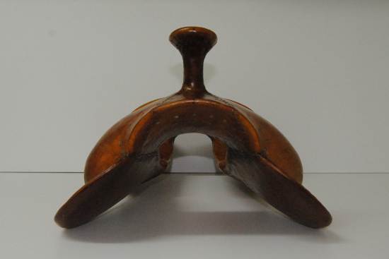 This is the front of a wood post 13" Modified Association tree. It has a hand hole width of 4" with 90 degree bars (remembering, of course, that you can't compare bar angles between makers...) The gullet height on this one is 7 3/4".