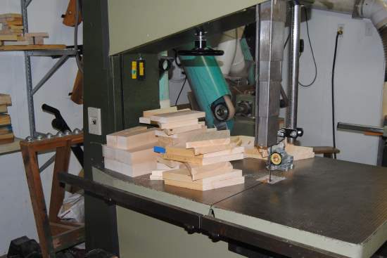 There are always trees in different stages of production around the shop. Here is the beginning – pieces of wood of specific shapes and sizes cut, planed, thicknessed and edged in preparation to being glued together.