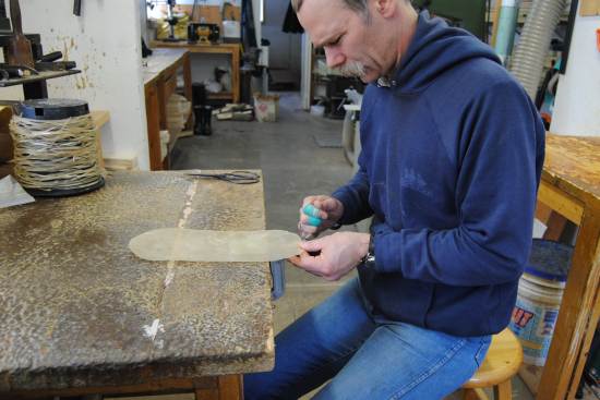The aim is to make the lace as even and as long as possible. If weak spots show up due to damage to the hide or just thinner places in the hide, the lace is cut and another strand is started.