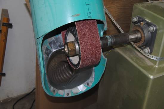 So… he ordered a coarser grit sandpaper. He has always used 50 grit, which was about as coarse as he could get back when he ordered his last sanding belts many years ago. Now, after a lot of time spent on the internet and phone tracking down a supplier, he was able to get 24 grit. That cuts down on the amount of time he needs to do each section and also the amount of pressure he needs to use to hold the wood. We're gaining…