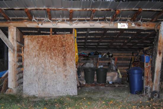 But if you live in a land that is below freezing for months on end, you need a place to make hide that doesn’t freeze. Thus, our 10 x 16 "minus-the-furnace-room-and-freezer-space” rawhide room with protected walls and a drain in the floor. Something else to put into your shop plans…