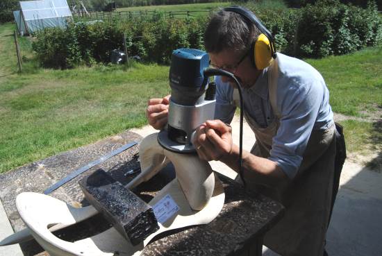 which Vern finished on the Wednesday and rawhided on Friday. (You need time for three coats of varnish in between.) Rawhiding the second one didn’t take nearly as long.