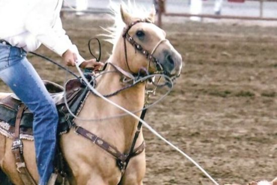 Another area, not related to saddles but still important, is how this muscle is affected by the use of a tie down. (Disclaimer - I just snaffled this picture off the net and I have no knowledge of the horse other than that it is wearing a tie down.) Since the cervical rhomboid acts to elevate the neck when the leg is weighted, it is one the horse uses a lot if it is trying to lift its head against the constraints of a tie down. So a lot of arena rope horses that are consistently used in a tie down will have a very enlarged cervical rhomboideus - an extra thick roll of muscle at the top of the neck - but some of the other neck muscles won't be well developed. Just something else I have heard.